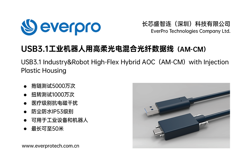 在現代工業自動化生產中,涉及各類檢查、測量和零件識別工作,需要大量應用機器視覺系統,用相機替代人眼進行圖像抓拍和處理。長芯盛智連專為機器視覺行業研發的多款高柔有源光纖USB數據線,在以光纖作為傳輸介質的基礎上,集成銅纜,采用特種BendRobust?高強度抗彎光纖、多股極細特種導體、防彈高強度非金屬加強件、超柔耐磨絕緣材料,不僅可以給相機設備供電,還可保證系統穩定持續運行。