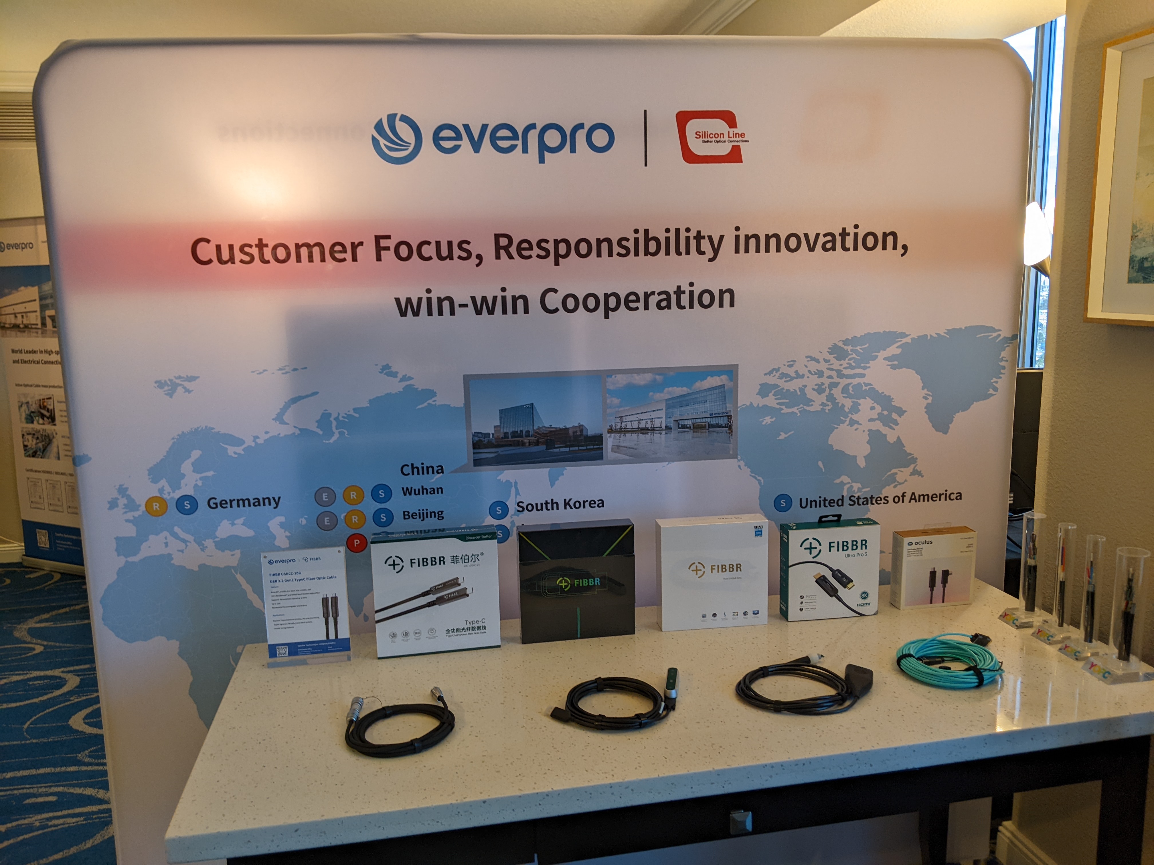展會(huì)現(xiàn)場,長芯盛還展出了市面上首款完全支持全功能USB-C的有源光纖數(shù)據(jù)線,能同時(shí)滿足USB 3.2 10G數(shù)據(jù)傳輸、DP視頻輸出以及PD充電等功能,支持DP Alt-Mode, 可在2Lane 和4Lane 之間進(jìn)行切換,無需單獨(dú)做設(shè)備配置操作和固件安裝,即插即用,實(shí)現(xiàn)行業(yè)技術(shù)的重大革新。