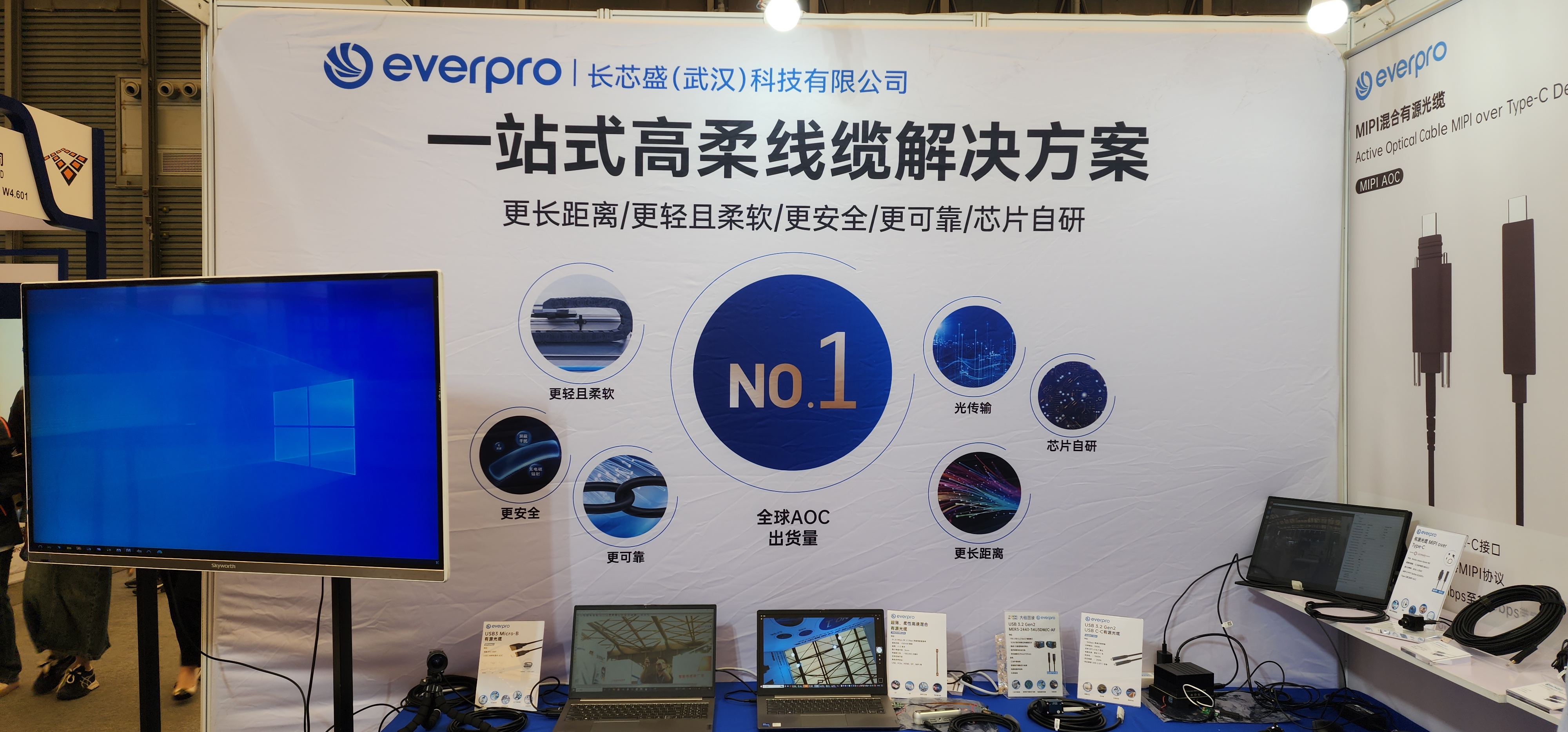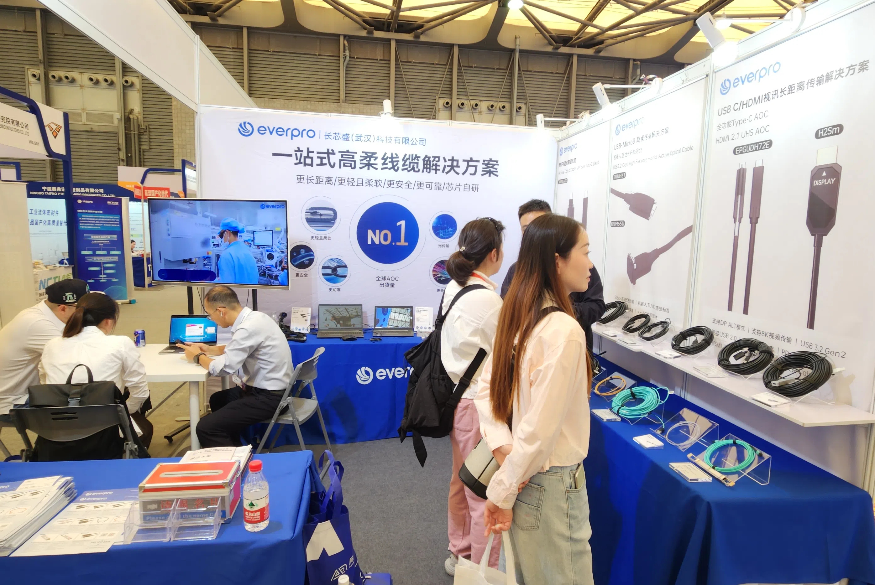 本次展會,長芯盛攜旗下高柔有源光纜及解決方案重磅亮相,通過實物展示、動態演示和互動體驗等多種形式,生動呈現了有源光纜的前沿成果及深度應用。
